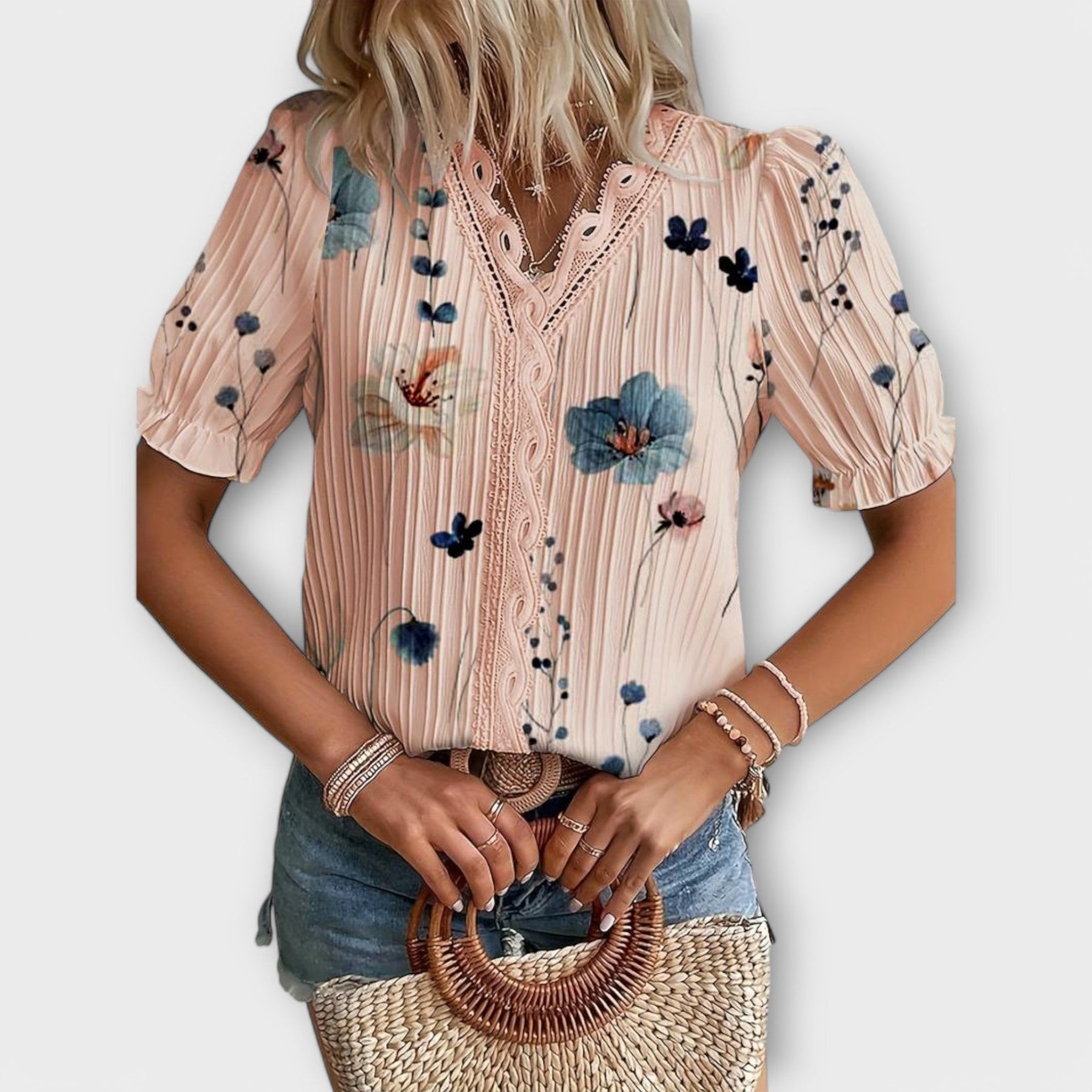 Dokončete svůj šatník nadčasovou blůzou Eline! Tato blůza s elegantním V-výstřihem je ideální na jaro a okouzlujícím způsobem zvýrazňuje vaše dekolté. Lehce prodyšný materiál poskytuje optimální komfort, zatímco volný střih dodává ležérní eleganci.